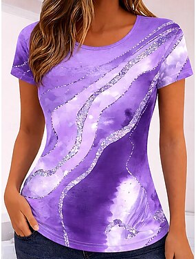 Farsang Női Póló Színes Grafika Mértani Szüret Stílusos Alkalmi Rövid ujjú Aszimmetrikus nyak Normál felsők Napi Sport Hétvége Bíbor Lóhere Nyár Tavasz