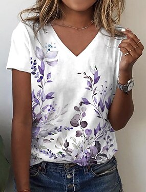 Női Póló Nyomtatott Virágos Grafika Növények Szüret Stílusos Alkalmi Rövid ujjú V-alakú Normál felsők Napi Hétvége Medence Sárga Arcpír rózsaszín Bor Rubin Nyár Tavasz