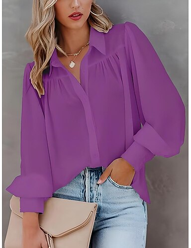 Női Ing Blúz Tömör szín Stílusos Alkalmi Hosszú ujj Állógallér Normál felsők Napi Gombok Fekete Fehér Sötétkék Poros kék Bíbor Nyár Tavasz