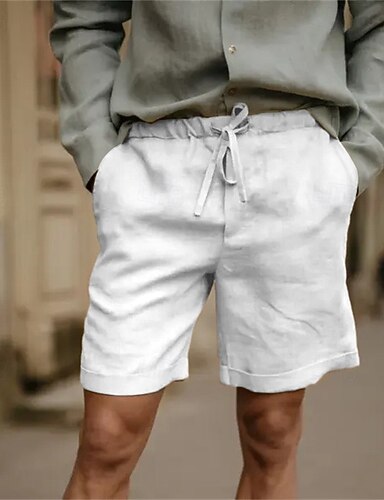Férfi Vászon rövidnadrág Nyári rövidnadrág Strand rövidnadrág Zseb Zsinór Rugalmas derék Sima Mokaszinok Légáteresztő Rövid Vakáció Szabadság Tengerpart Hawaii Boho Fekete Fehér