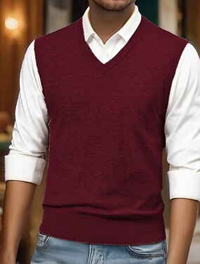 Férfi Pulóver Pulóver mellény Kábel Kötött Kötött Tömör szín V-alakú Stílusos Régies stílus Előírásos Szabadtéri Ruházat Tél Ősz Fekete Bor S M L