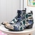 férfi virágos jacquard és barna műbőr fűzős csizma - vintage oxford bokacsizma retro stílussal hétköznapi és formális viselethez