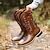 férfi barna hímzett műbőr western cowboy csizma - klasszikus, strapabíró, négyzet orrú rodeó stílus farmra és kültéri viseletre