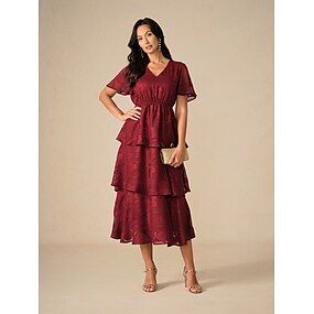 Női Midi ruha Csipkeruha Party ruha Koktélruha Esküvői vendég ruha Elegáns Buli Vakáció Esküvői vendég Koktélparty Normál Tömör szín Háromnegyedes Terített nyak Pezsgő Tavasz Ősz Tél