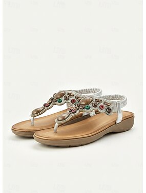 női strasszokkal díszített t-pántos szandál – elegáns, lapos szandál nyári strandra, esküvőre és partira