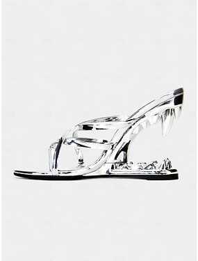 női ezüst csillogós sarkú szandál kristálymasnival és átlátszó kúpos sarokkal, káprázatos, nyitott orrú participők éjszakai életre, tetőtéri rendezvényekre, klubokba vagy születésnapi ünnepségekre