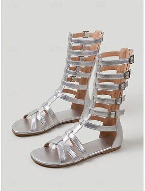 női arany gladiátor lapos talpú szandál, térdig érő, pántos nyári cipők nyaralási vacsorákhoz, üdülő estékhez &strandpartik