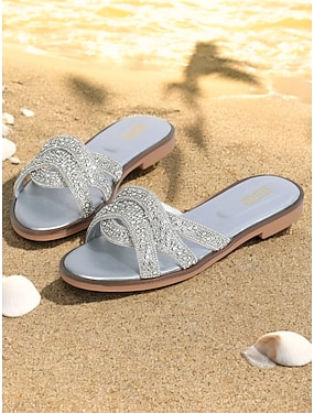 női bohém strasszkő lapos szandál – csillogó, felcsúsztatható strandcsúszdák keresztezett pántokkal nyári és hétköznapi viselethez