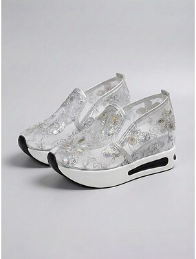 női zöld virágmintás, hálós, bebújós cipők – könnyű, lélegző, platformos túracipő utazáshoz, kertészkedéshez &mindennapi viselet