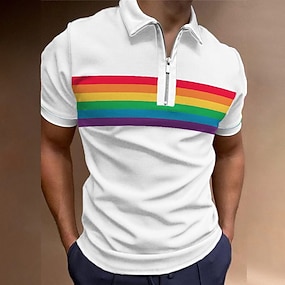 Férfi Szivárvány Hawaii pólóingek Golfing Rövid ujjú Pólóingek Galléros ingek Alkalmi Strandruházat Nyaralási viselet Trópusi viselet Party ruhák 3D nyomtatás Quarter Zip Polo Fekete Oliva zöld Fehér