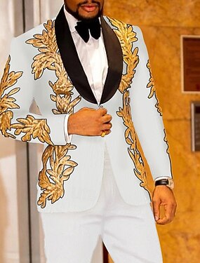 Férfi Parti Tuxedók Csillogó Fehér Sárga Virágmintás Normál Illeszkedés 2 Részes Egygombos