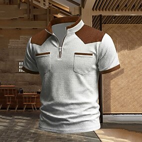 Férfi Gofris pólóingek Póló Hétköznapi Napi Cipzár Negyed irányítószám Rövid ujjú Divat Alap Színes Kockás Cipzár Könnyű Tavaszi nyár Nyár Tavasz Szabott Fekete Fehér Sötétkék khakizöld Szürke Gofris