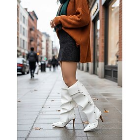 női fehér fűzős, térdig érő csizma vastag talppal - stílusos és sokoldalú hétköznapi vagy utcai divathoz