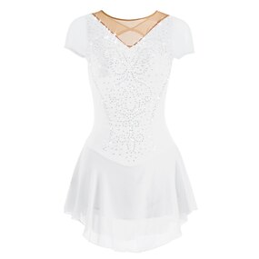 Kűrruha Női Lány Klizanje na ledu Ruhák Fehér Kollázs Nyissa meg a Vissza elemet Háló Spandex Nyúlós Edzés Gyakorlat Professzionális Kűrruhák Melegen tartani Kristály / Strassz Rövid ujjú