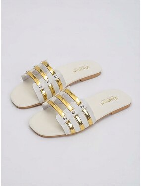 női fehér és arany papucs szandál - elegáns lapos, pántos papucsok luxus üdülőhelyekre, medencepartra, trópusi nyaralásokra &nyári strandolás