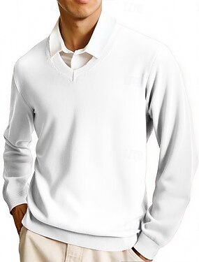 férfi prémium gyapjúból készült kasmír v-nyakú pulóver, klasszikus kötött pulóver, puha, meleg, lélegző