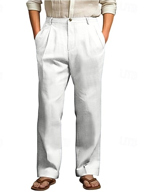 Férfi Vászon nadrág Nadrág Nyári nadrág Bő nadrág Rugalmas derék Zsinór Egyenes lábbal Sima Mokaszinok Légáteresztő Teljes hossz Szabadtéri Hétköznapi Napi Divat Klasszikus stílus Fekete Fehér Nem