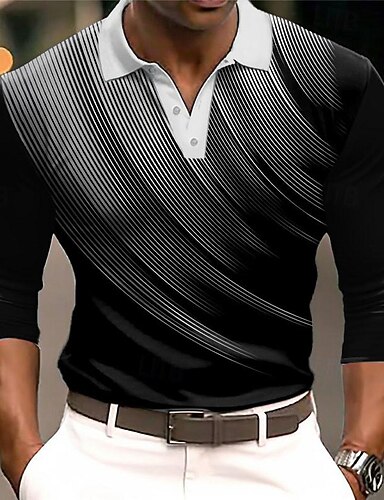 Férfi Mértani Pólóingek Golfing Hosszú ujj Pólóingek Galléros ingek Üzleti alkalmi Munkaruha Ünnepi viselet Fesztivál viselet 3D nyomtatás Gombok Ősz & tél Fehér Bor Kék
