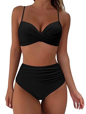 Női Bikini 2 részes fürdőruha Ráncolt Pici Hasellenőrzés Magas Derék Karcsúsító Hátsó Kivágású Vakációs Strandruha Egyszínű V Nyakú Ujjatlan Fürdőruha