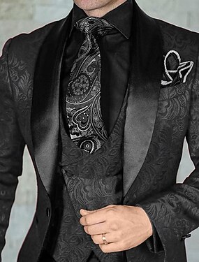 Férfi Esküvő Parti ruhák Sálhajtóka Fekete Fehér Mintás Szabott 3 részes készlet Egysoros egy gombos