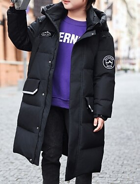 Gyerekek Fiú Pehely Pufferkabát Felsőruházat Szöveg Hosszú ujj Kabát Iskola Menő Imádni való Fekete Lóhere Ősz Tél 7-13 év