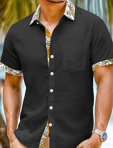 Pamut és ágynemű Klasszikus Férfi Ing vászon ing Nyári póló Stranding Gombos póló Fekete Fehér Medence Rövid ujjú Sima Térfogatcsökkenés Nyár Vakáció Szabadság Ruházat