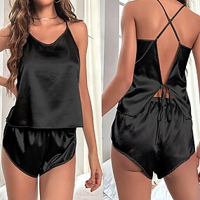 Női Szexi fehérnemű Szatén selymes pizsama pizsama HálóNightwearPoliészter Hétköznapi viselet Randi Szerető Egyszínű Újévi Édes Fekete Bor Tavaszi nyár Ősz & tél