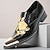férfi fekete lakkbőr elegáns cipő arany virágmintás díszítéssel, luxus hegyes orr, alkalmi lábbeli