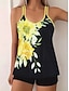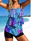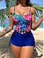 Női Fürdőruha Tankini 2 darab Fiú láb Fürdőruha Hasszorító Magas derék Vékony Nyitott hátú Szabadság Strandruházat Virágos Mértani Mély dekoltázs Ujjatlan Fürdőruhák