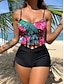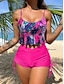 Női Fürdőruha Tankini 2 darab Rövidnadrágok Fürdőruha Hasszorító Magas derék Vékony Nyitott hátú Szabadság Strandruházat Virágos Mély dekoltázs Ujjatlan Fürdőruhák