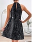 Valentin nap Női Mini ruha Halter ruha Vállon kívüli ruha Elegáns Buli koktél Szabadtéri Parti Esküvői vendég Normál Tömör szín Ujjatlan Kötőfék nyaka Fekete Fukszia Nyár