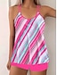 Női Fürdőruha Tankini 2 darab Magas derék Fürdőruha Fodrozott Többrétegű Nyitott hátú Szabadság Strandruházat Ombre Grafika U-alakú Ujjatlan Fürdőruhák