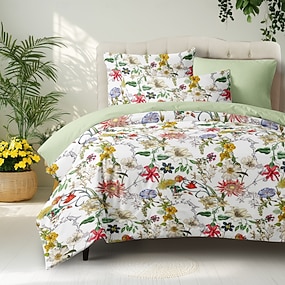 Virágos Duvet Huzat Szett 100% Pamut Puha és Lélegző Ágynemű Színes Virágokkal Könnyű és Tartós Takaró Huzat Kényelmes Minden Évszakban Könnyen Ápolható