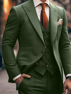 Férfi Esküvő Őszi esküvő ruhák Spicc gallér Hegyes Sötétkék Katonai zöld Előírásos Egyszínű Szabott 3 részes készlet Egysoros egy gombos