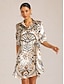 Női Nő hétköznapi ruha Barna Rövid ujjú 3/4-es ujj Virágos Nyár Tavasz Minden évszak V-alakú Modern XS S M