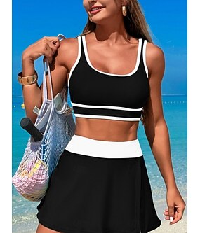 Női Tankini 2 részes fürdőruha redős szoknyával Boho szoknya 3D virágos vakációs tengerparti viselet grafikus kerek nyakú ujjatlan fürdőruha