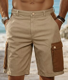 Férfi Rövidnadrágok Vászon rövidnadrág Nyári rövidnadrág Kollázs Zseb Színes Egyszínű Mokaszinok Légáteresztő Rövid Hétköznapi Napi Szabadtéri Divat Dizájn Lóhere Khakizöld Nem elasztikus