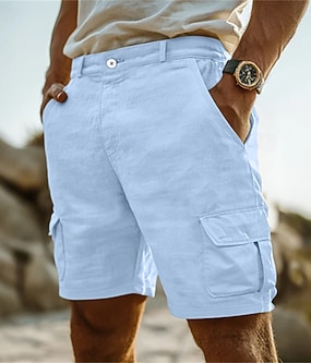 Férfi Rövidnadrágok Vászon rövidnadrág Nyári rövidnadrág Strand rövidnadrág Többzsebes Egyenes lábbal Sima Mokaszinok Légáteresztő Térdhossz Szabadtéri Hétköznapi Napi Klasszikus stílus Retró Fehér