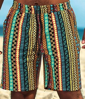 Férfi Mértani formák Etno Úszónadrágok Deszkás short Közepes csípő Utcai sikk Hawaii Hétköznapi Szabadság Tengerparti nyaralás Zseb Zsinór Rugalmas derék Tervező Ruházat