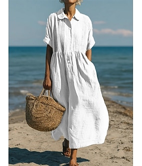 Női Midi ruha Műpamut ágynemű Ingruha Kaftán Divat Modern Napi Szabadtéri Vakáció Normál Sima Rövid ujjú Állógallér Medence Fekete Fehér Sárga Nyár Tavasz
