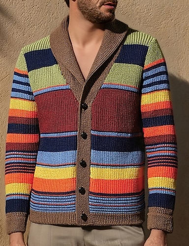 Férfi Kardigán Levágott pulóver Kötött pulóver Bordázott Kötött Normál felsők Gombok Csík Sálhajtóka Divat Klasszikus Vakáció Hétköznapi viselet Ruházat Ősz Tél Barna M L XL
