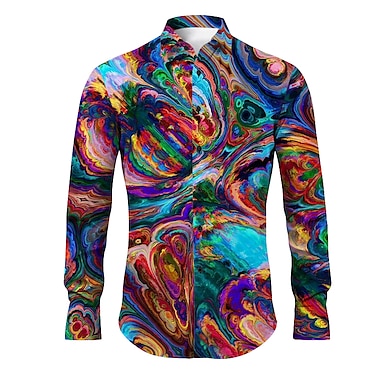 Férfi Színes Mértani formák Ing Gombos póló Hosszú ujj Művészi Absztrakt Hétköznapi viselet Alkalmi Ősz & tél Térfogatcsökkenés Nyomtatott Gomb lefelé Bíbor Szivárvány