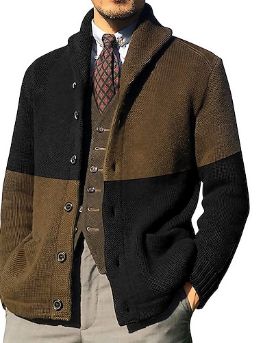 Férfi Kardigán Levágott pulóver Kötött pulóver Bordázott Kötött Normál felsők Begombol Sima Hajtóka Divat Klasszikus Vakáció Hétköznapi viselet Ruházat Ősz Tél Medence M L XL
