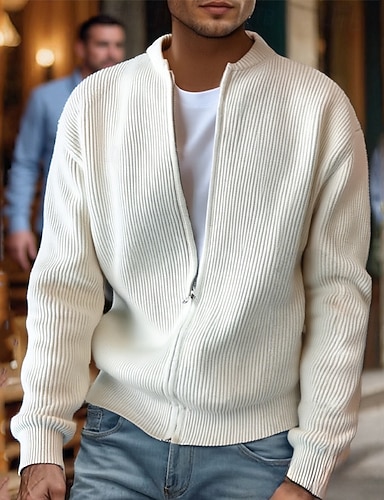 Férfi Kardigán Levágott pulóver Cipzáras pulóver Kötött pulóver Bordázott Kötött Normál felsők Zseb Sima Állógallér Divat Klasszikus Vakáció Hétköznapi viselet Ruházat Ősz Tél Fekete Bézs M L XL