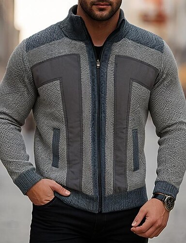 Férfi Kardigán Cipzáras pulóver Pulóver dzseki Karácsonyi pulóverek Karácsonyi pulóver Vaskos Kötött Cipzár Bordázott Tömör szín Álló gallér Karácsony Kötöttáru Hétköznapi viselet Randi Ruházat
