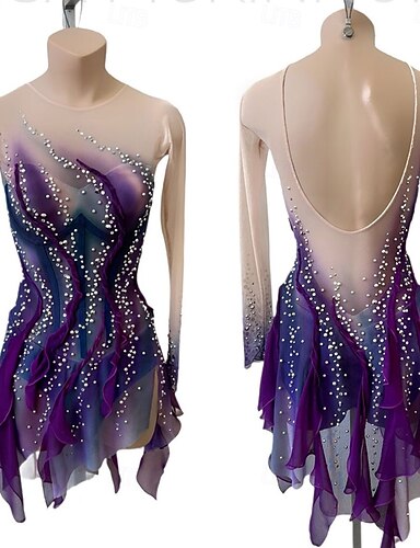 Kűrruha Női Lány Klizanje na ledu Ruhák Felszerelések Világos bíbor Yan rózsaszín Ibolya Spandex Nagy rugalmasságú Gyakorlat Kűrruhák Kézzel készített Divat Hosszú ujj Jégkorcsolyázás Téli sportok