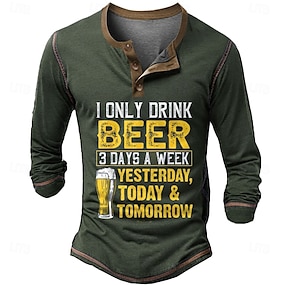 Férfi hosszú ujjú grafikai póló vicces sörivó pun Henley ing - Tegnap Ma Holnap