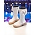 Koreai idol ihlette popsztár jelmezcipők gyerekeknek - fehér csizma masnival és gyöngyházgombokkal, vastag talppal, tökéletes előadásokra, bulikra vagy különleges alkalmakra