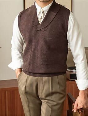 Férfi Pulóver mellény Ruha Pulóver Pulóver pulóver Mellény Kötött pulóver Bordázott Kötött Normál felsők Kötött Sima V-alakú Divat Alkalmi Vakáció Hétköznapi viselet Ruházat Ősz Tél Fekete Barna S M L