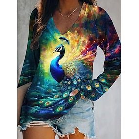 Womens T Shirt V Nyakú Hosszú Ujjú Tunika Virágos Grafika Madár Retro Stílusos Hétköznapi Normál Felsők Mindennapi Nyomtatás Rózsaszín Lila Zöld Tavasz Ősz
